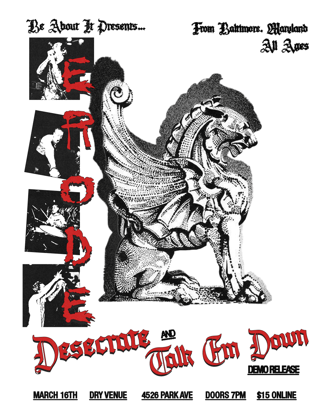 Bringing Erode out to Montreal for their first ever Canadian tour dates. Brand new spot, let’s run it up.