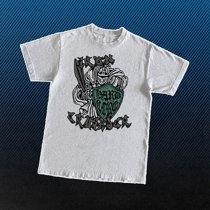 Iron Crusaders Grey T-Shirt Printed on American Apparel Limited Sizes available, ships immediately Code "local" for pickup at any of our gigs